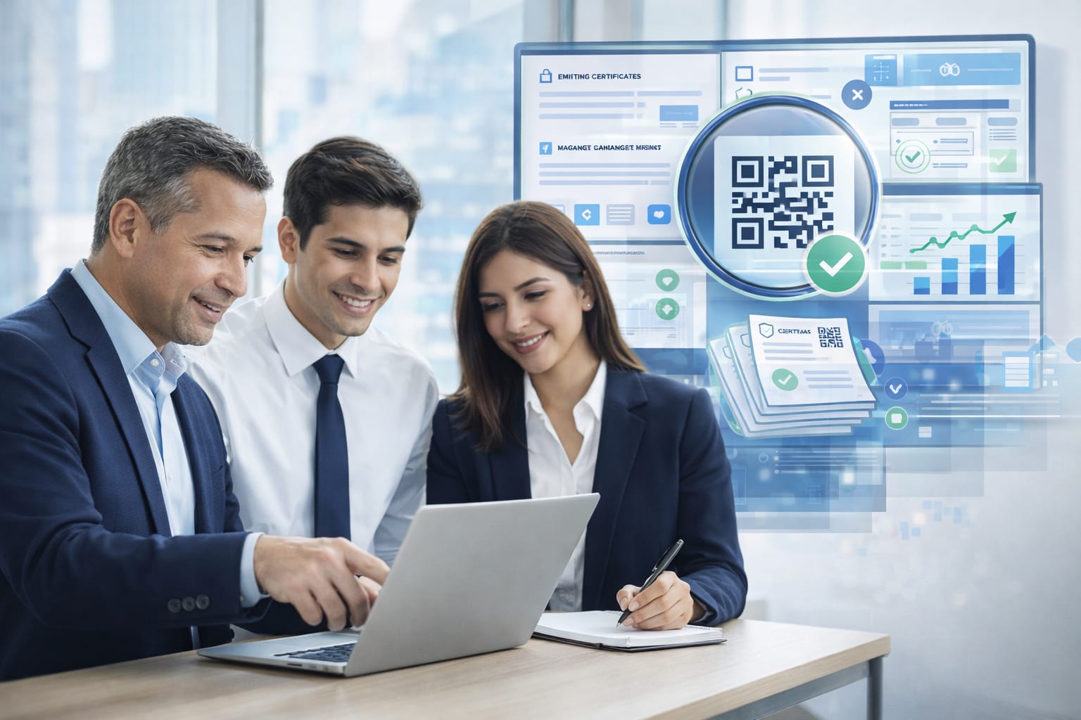 Los certificados Certia incluyen un QR de verificación con URL única, datos del emisor, fecha y hash de integridad. Son válidos como respaldo académico y profesional. Para fines legales específicos, recomendamos combinarlos con firma digital cualificada (disponible en planes Excelencia y Corporativo).
